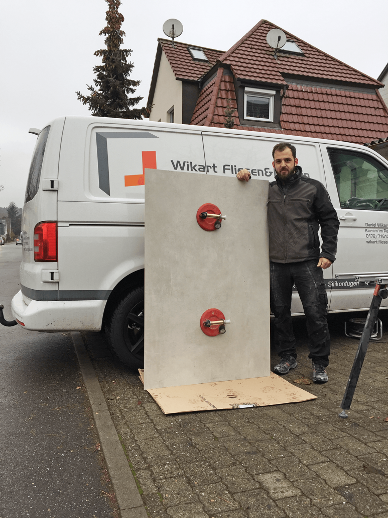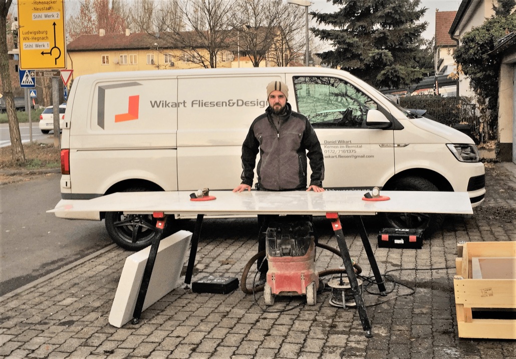 Verlegen von Großformatigen Fliesen Format 100 x 300 cm