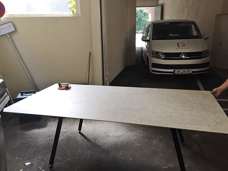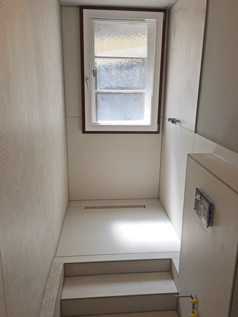 Großformat Fliesen 120 x 120 cm und 120 x 240 cm verlegt.